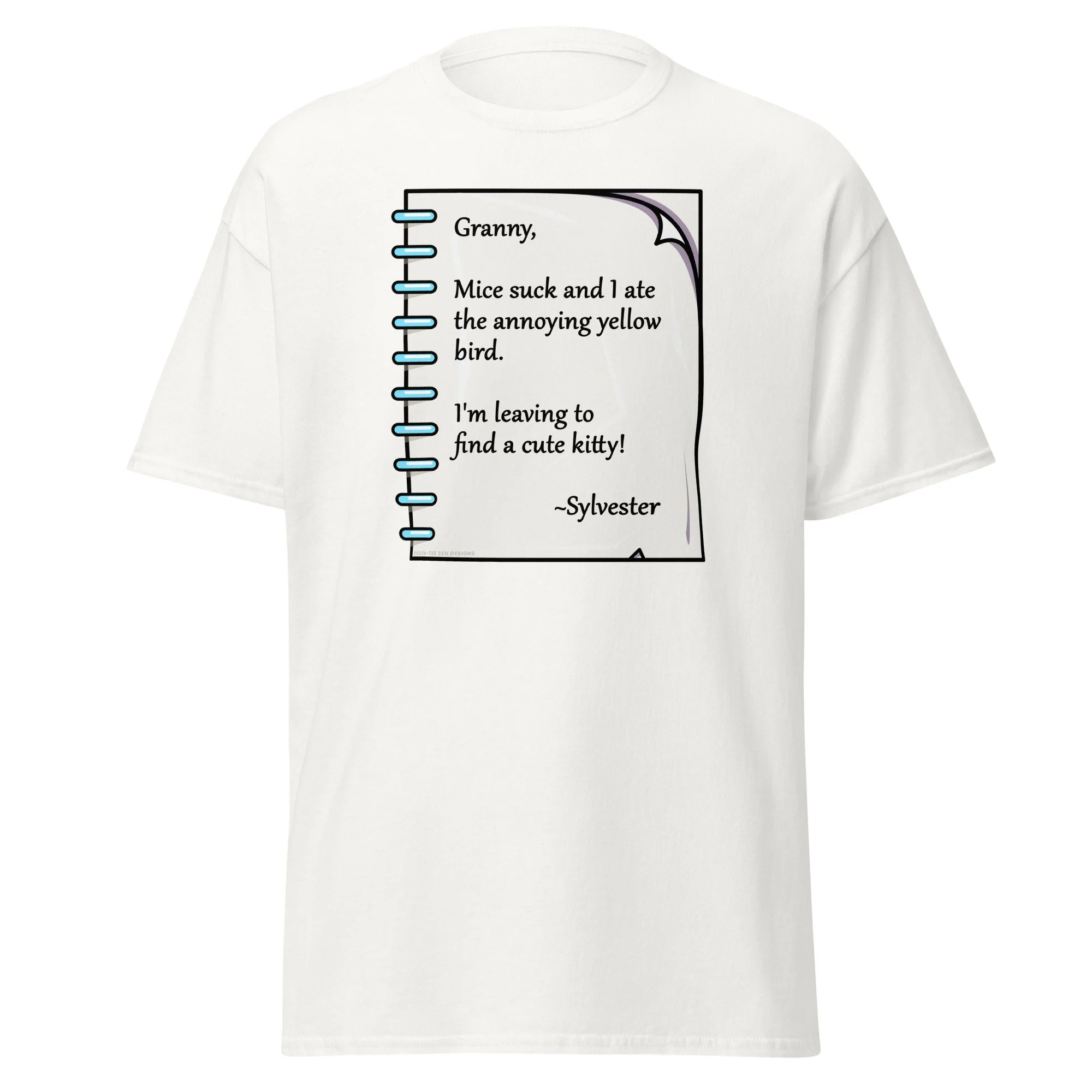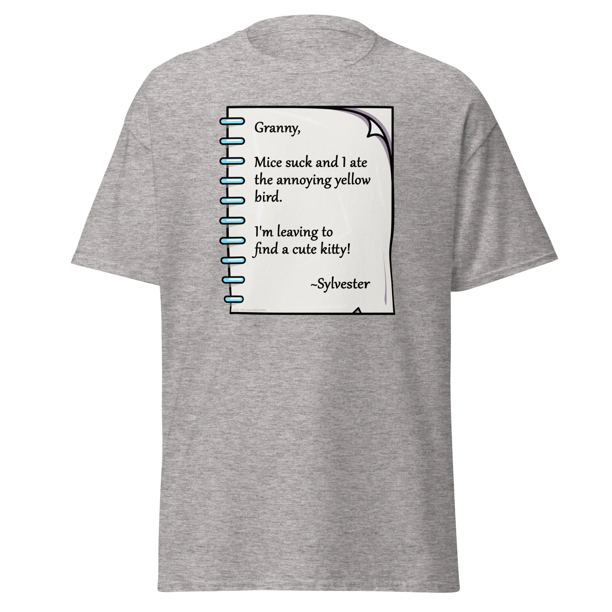 Playful cartoon note featuring Sylvester the Cat’s cheeky farewell to Granny—perfect for fans of vintage humor, Looney Tunes nostalgia, and mischievous feline charm. Ideal for quirky gifts and retro collectors.