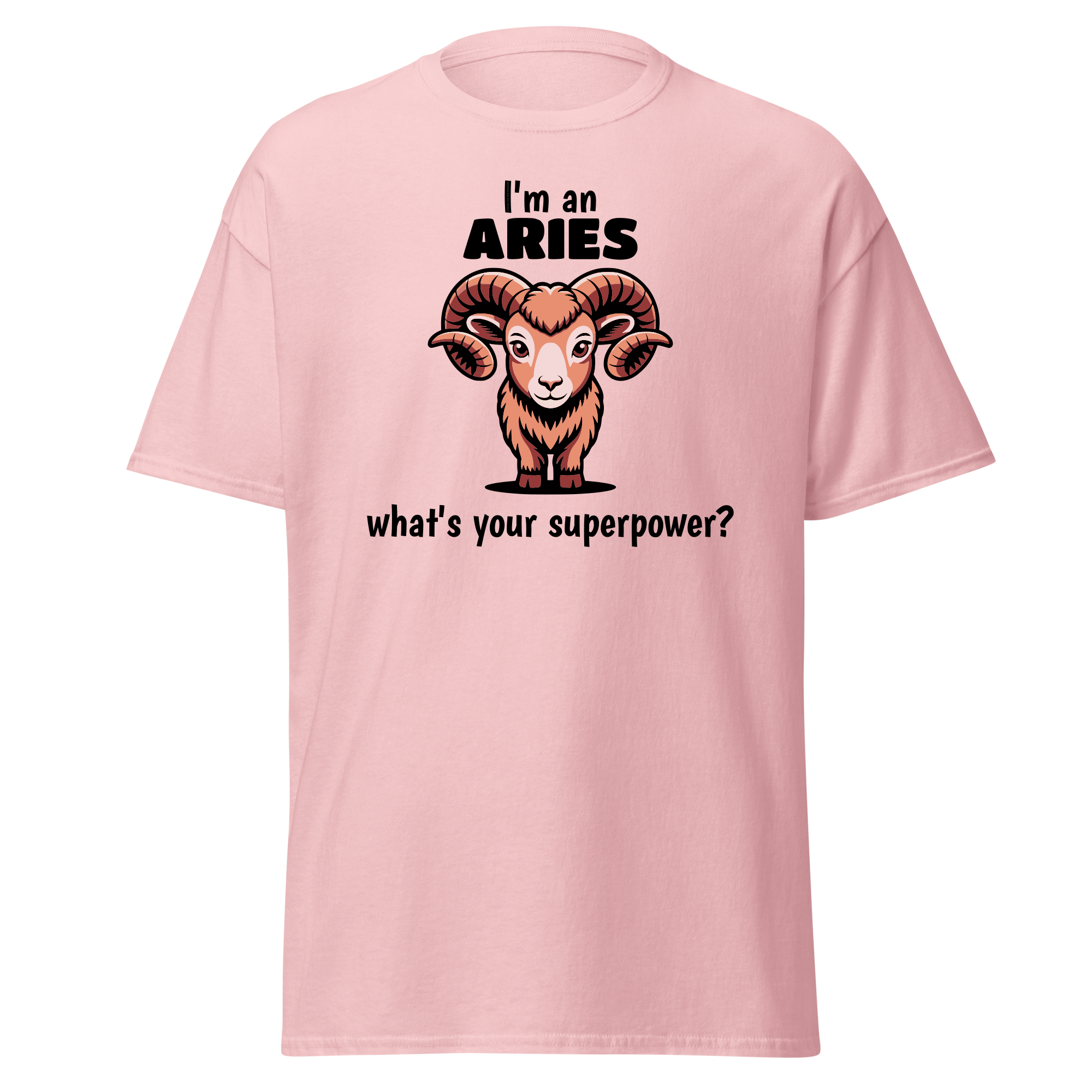 A front-facing ram with dramatically curved, ridged horns dominating the frame — warm terracotta and salmon tones, soft expression beneath the imposing headgear. Aries leads. Always. Whether anyone asked or not. Your superpower is moving first, moving fast, and somehow making it work through sheer force of will.